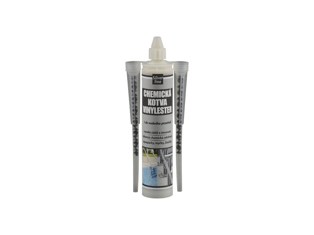 Dvousložkový chemický kotvicí systém pryskyřic pro velice rychlé kotvení s vysokou pevností, vytvrzující chemickým procesem (bez styrenu).https://dokumentace.denbraven.cz/?p=25+Silver+Line%2FChemick%C3%A1+kotva+VINYLESTER+bez+styrenu+Silver+Line