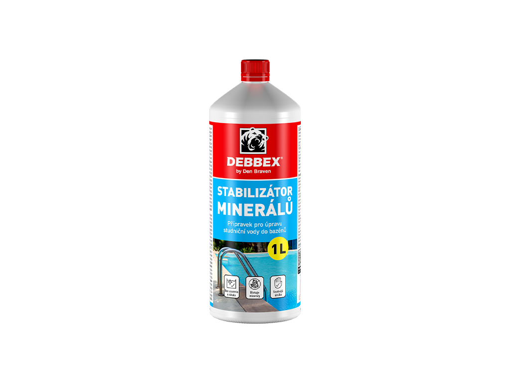 Stabilizátor minerálů je tekutý přípravek pro ošetření mineralizované nebo studniční bazénové vody. Přípravek zablokuje minerály a rozpuštěné kovy způsobující zákal. Ošetřená voda je nezávadná a snáze se udržuje.https://dokumentace.denbraven.cz/?p=24+Ostatn%C3%AD%2FCranit+Stabiliz%C3%A1tor+miner%C3%A1l%C5%AF
