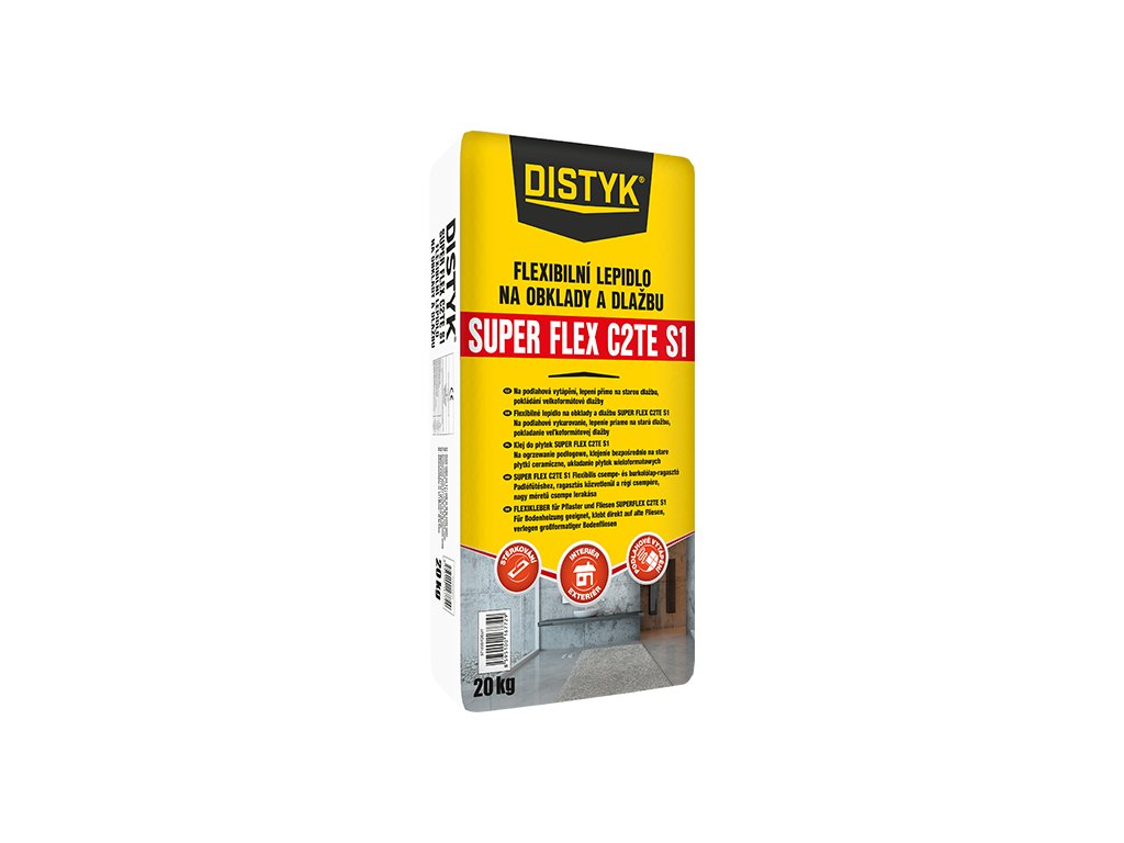 Deformovatelné cementové lepidlo se sníženým skluzem a prodlouženou dobou zavadnutí vyhovující náročnějším podmínkám. Určené pro lepení obkladů a dlažby, lepení tepelně izolačních materiálů a stěrkování armovací tkaniny. Vyznačuje se vysokou plasticitou, lepivostí a flexibilitou lepení.https://dokumentace.denbraven.cz/?p=28+DISTYK+Line%2FFlexibiln%C3%AD+lepidlo+na+obklady+a+dla%C5%BEbu+Super+Flex+C2TE+S1+DISTYK+Line