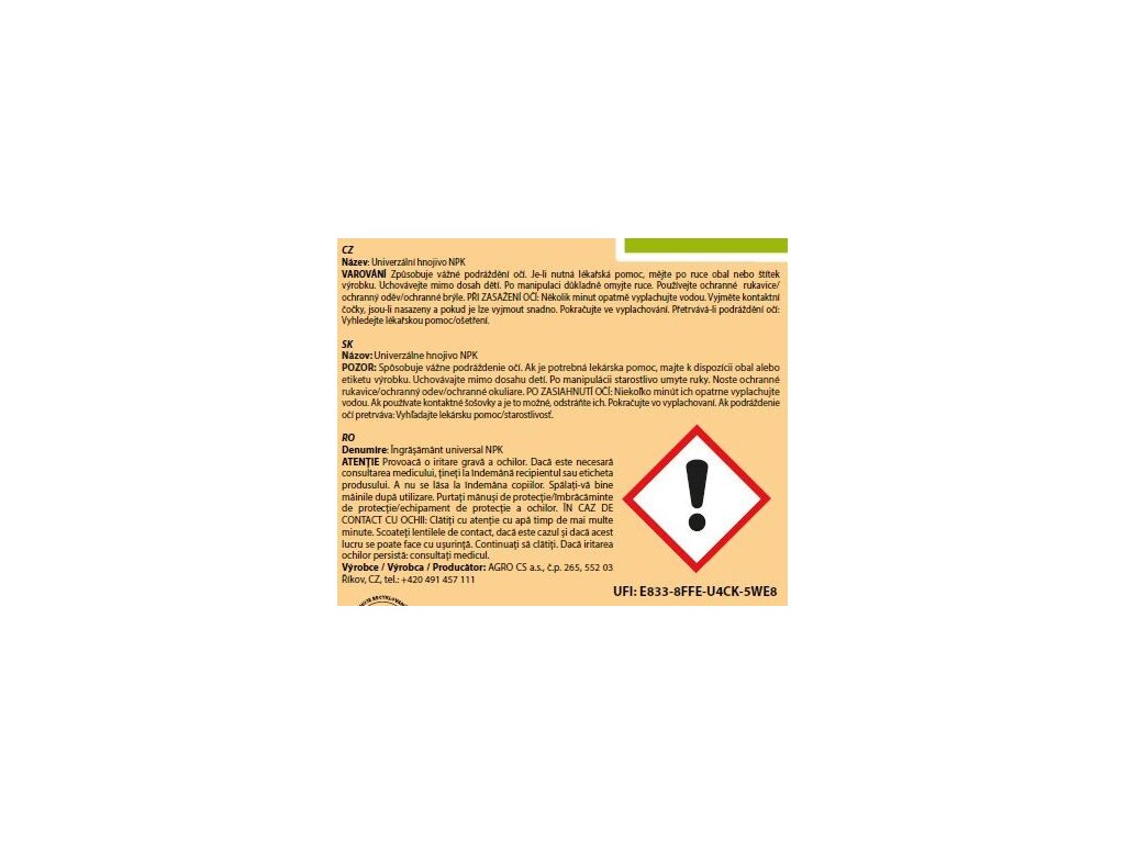AGRO NPK je minerální hnojivo určené k základnímu hnojení ovoce a zeleniny před vlastní výsadbou a k přihnojování v průběhu vegetace.