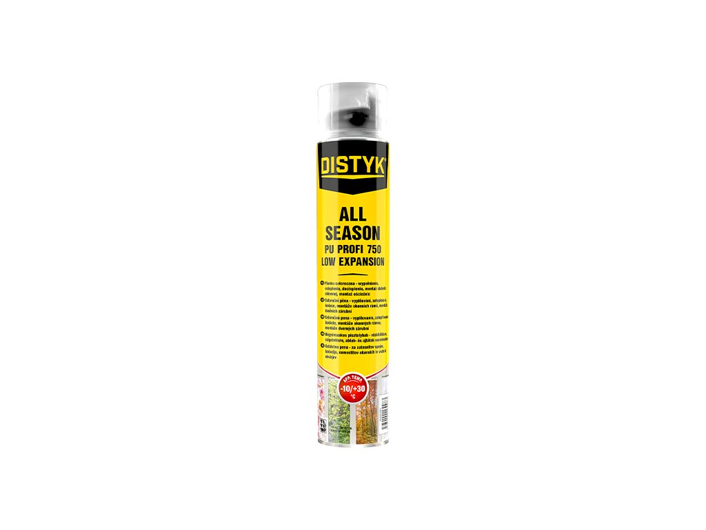 Celoroční pistolová pěna pro utěsňování spár, montáž dveřních zárubní, okenních rámů, vyplňování průchodů trubek a elektrických kabelů. Výborná přilnavost ke všem stavebním materiálům – beton, kámen, omítka, zdivo, dřevo, polystyren apod. Tepelná izolace půdních prostorů apod.https://dokumentace.denbraven.cz/?p=28+DISTYK+Line%2FPistolov%C3%A1+celoro%C4%8Dn%C3%AD+p%C4%9Bna+DISTYK+Line