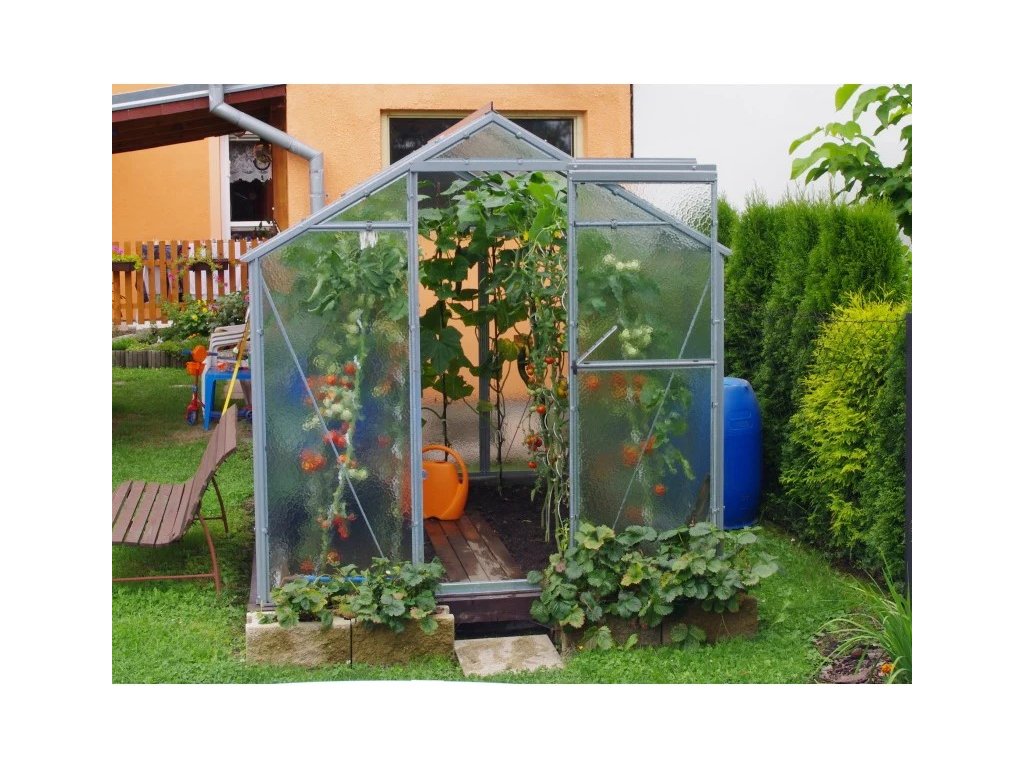 Výplní zahradního skleníku je speciální skleníkové sklo tloušťky 4 mm s efektem rozptylu paprsků. Díky této úpravě není třeba skleník zastiňovat. K rostlinám se dostane veškeré spektrum světla a přitom nehrozí jejich spálení.